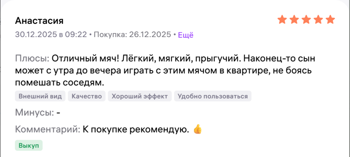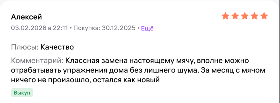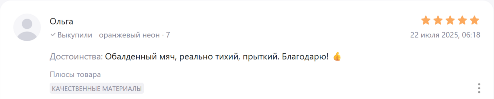 У них один слой, который крошится со временем. У тихих мячей GO&PLAY — двухслойная конструкция: прочный чехол снаружи и упругая основа внутри. Он служит в разы дольше.